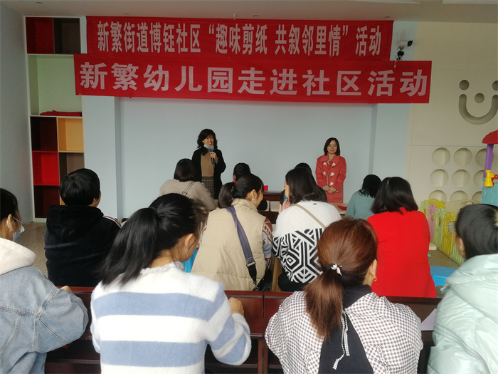 四川新闻网成都10月27日讯 社区工作是幼儿园教育的重要组成部分,是做好幼儿园教育的基础保证。为了更好地整合社区资源,结合社区需求,2021年10月26日,新都区新繁幼儿园受新繁街道博钰社区邀请参加“趣味剪纸 共叙邻里情”活动。借此契机,幼儿园走进社区、服务社区,交流剪纸民间艺术,宣传科学的育儿理念,帮助社区居民更好地了解秋冬传染病防控知识,做好幼儿传染病防控工作。