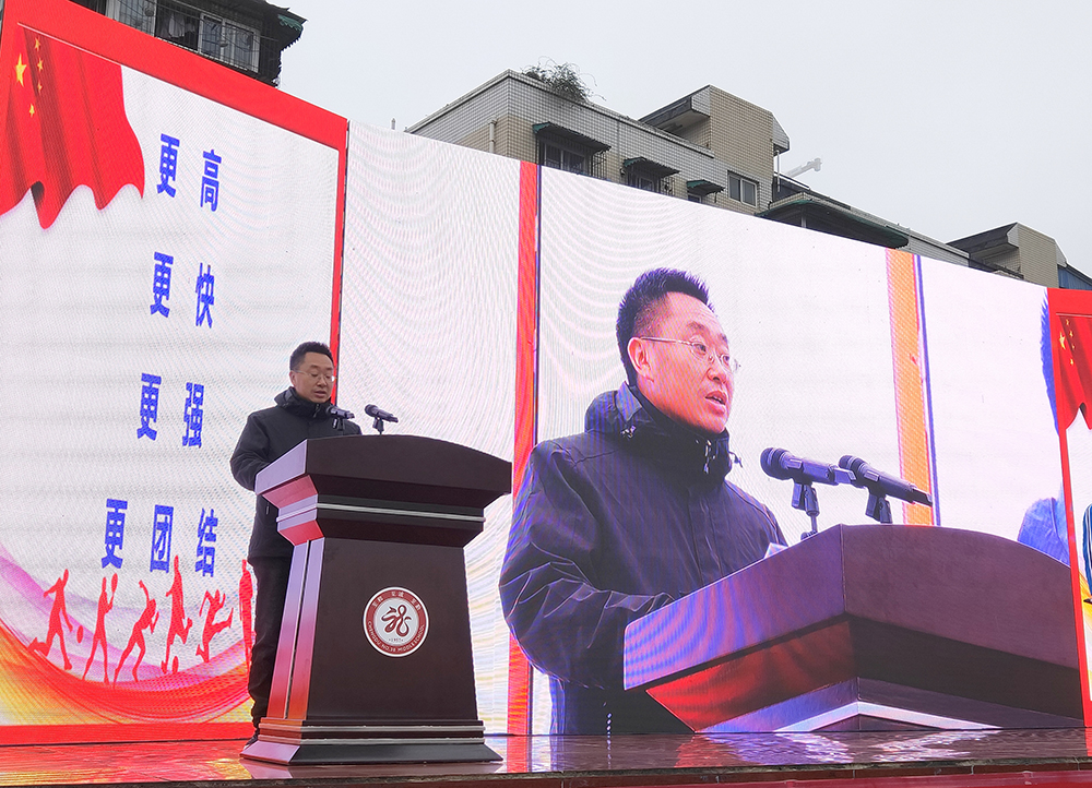 在庄严的升旗仪式后,副校长梁栋在致辞中为师生们加油鼓劲:“在过去的一年里,我校全体师生发扬负重拼搏,勇于创新的精神,在校园建设、规模扩展、教育教学等方面均取得了可喜的成绩。但我们挑战自我的步伐不能停止,我们不仅要在学业上勇于争先,而且要在德、智、体、美、劳等更广泛的领域内实现新的突破,尤其是体育运动。本次盛会,希望全体运动员牢固树立‘安全第一、友谊第一、比赛第二’的思想,发扬‘更高、更快、更强、更团结’的奥林匹克精神,敢于拼搏,赛出水平,赛出风格!希望裁判员、工作人员把忠心献给学校,爱心献给学生,责任心献给本届运动会。希望所有的三十八中人在运动场上每一次激情的跳跃,每一步热情的奔跑,来共同奏响学校开拓、创新的壮美乐章。力争使本届运动会展示班级风采,取得运动好成绩和精神文明双丰收,让校运会成为展示体育精神、推动学校进步、促进和谐、文明发展的盛会。”