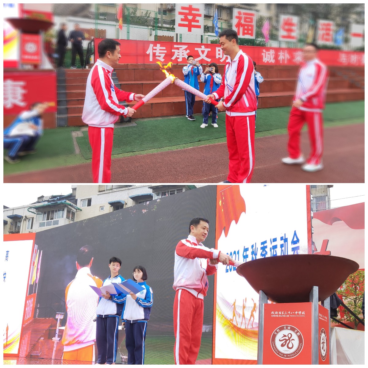随后,火炬传递仪式正式开始!各年级学生代表、教师代表逐级接力,最终将火炬传递到校党总支书记蒋涛手中,蒋涛将主火炬点燃,正式启动校秋季运动会的开幕式。