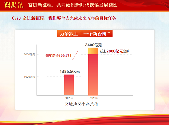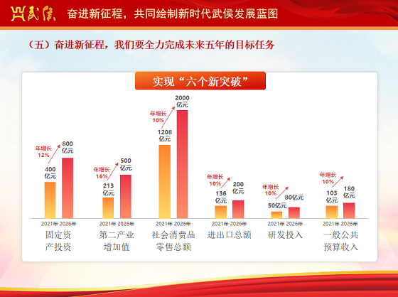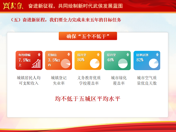 未来5年,武侯区的奋斗目标是:跃上“一个新台阶”、实现“六个新突破”、确保“五个不低于”——