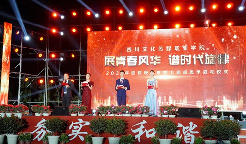 随着绚烂的烟花在夜空中绽放,“展青春风华,谱时代旋律”2021年迎新晚会暨第七届感恩季启动仪式也正式拉开帷幕。晚会共包括青葱岁月、理想时空、时代风采三个篇章共14个节目,融合了朗诵、歌舞、专业展示等多种表演形式,将红色历史、感恩教育紧密结合。“我们今年的感恩季活动将持续近两个月,结合今年建党百年红色主题,也体现学院‘十四五’规划中对校园文化活动的最新要求,感恩季活动面向全校师生展开,让感恩教育成为育人常态。”校团委书记王林老师介绍说。
