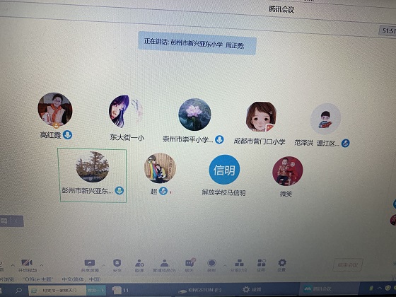 成都市营门口小学校、崇州市崇平小学、彭州市新兴镇亚东小学、简阳市解放九年义务教育学校和成都市温江区东大街第一小学校相关负责人参加此次云端会议。