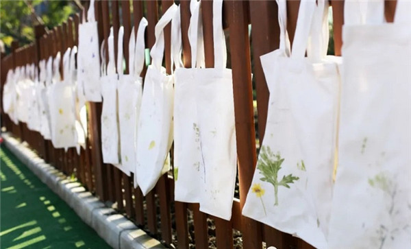 在咚咚咚使劲敲染的过程里,通过手锤感知植物汁液的迸发,植物通过敲染和织物合二为一,那些饱含了大自然清冽香味的植物在孩子们的手下完成了生命华丽的轮回,它们自己都不知道它们在那些棉麻的织布上不光是留下了美丽的形,更留下了隽永的味。
