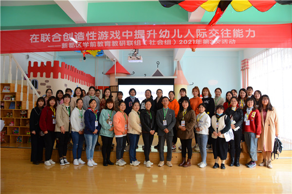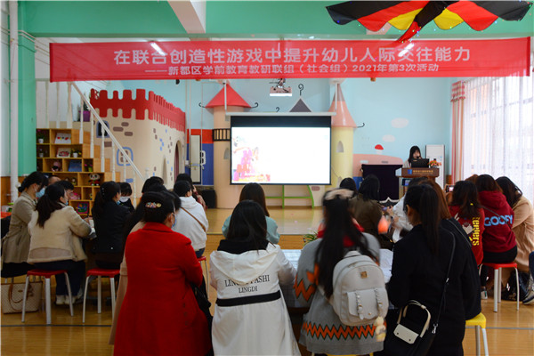 四川新闻网成都10月30日讯 游戏是促进幼儿人际交往发展的重要途径。2021年10月27日上午,成都市新都区新繁幼儿园新城分园以“在联合创造性游戏中提升幼儿人际交往能力”为主题,开展了新都区学前教育社会教研联组2021年第3次活动。新都区教科院学前教育教研员张楠,社会组全体成员,以及香宝宝大丰赵家幼儿园的老师们参加了此次活动。