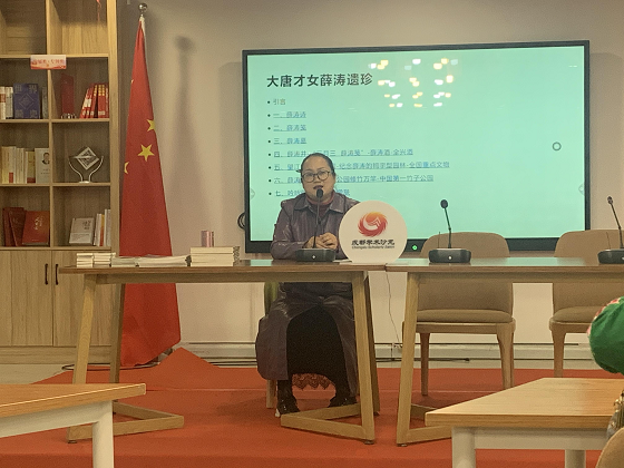 四川新闻网成都11月2日讯 近日,“大唐才女薛涛遗珍”科普讲座在成都市武侯区红牌楼街道太平社区举行。此次活动由中共成都市武侯区委宣传部、成都市武侯区文学艺术界联合会和成都市武侯区社会科学界联合会联合主办,由成都薛涛研究会、成都市薛涛文化社科普及基地承办,由成都市望江楼公园、武侯区红牌楼街道、红牌楼街道太平社区协办。