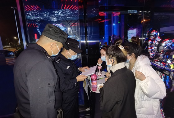 四川新闻网成都11月4日讯 为切实做好疫情防控工作措施,结合疫情防控要求,11月3日晚上,邛崃市公安局治安管理大队全员出动,对城区旅店业、酒吧进行疫情防控检查。