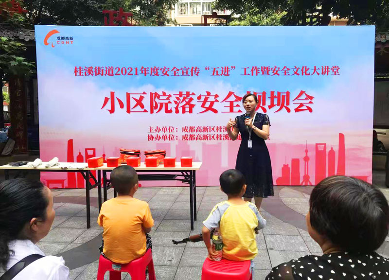 随着安全宣传“五进”工作深入开展,桂溪街道持续在夯基础、建机制、强意识、促示范上下足功夫。年初,在成都市、高新区两级应急部门指导下,桂溪街道积极谋划、开拓创新,以点带面大力推进四川省安全宣传“五进”工作示范点建设,结合辖区商务楼宇集中、小区院落多、人口密度大等特点,开展具有本地特色的“进社区”“进家庭”安全宣传,培育安全文化,营造安全氛围。