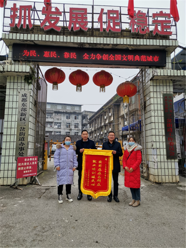 四川新闻网成都12月6日讯 今(6)日,三岔街道2021年美容师培训班学员代表将一面写着“实实在在为群众 就业培训暖人心”的锦旗送到街道办事处,感谢街道举办劳务品牌技能培训班,帮助他们提升就业技能,奠定再就业基础。