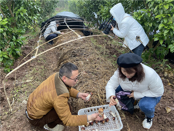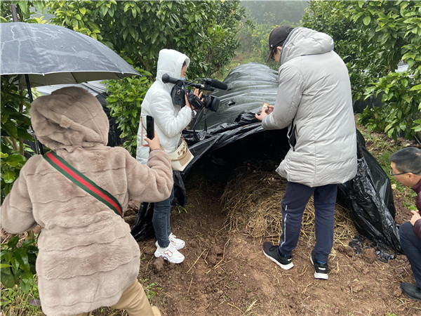会后,各到访单位人员亲临种植地,采摘大球盖菇,拍摄宣传素材。曾先富研究员以科技特派员团队队长身份、岁立云同志以驻村第一书记身份拍摄采访宣传视频,盼望大球盖菇种植项目取得良好收益,带动丙灵村集体经济高速发展。