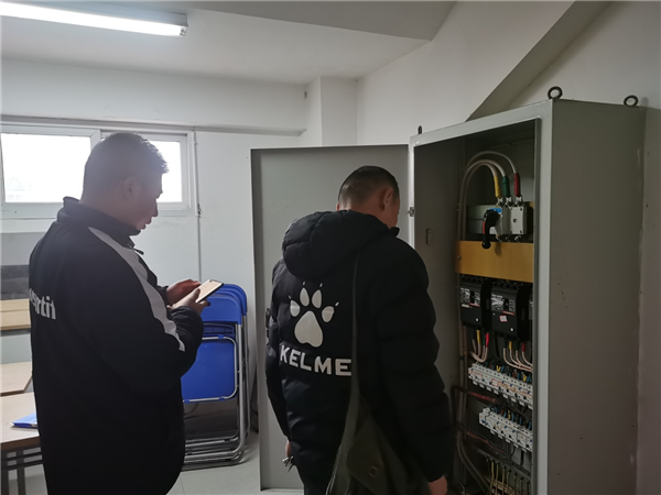此次检查重点包括园区及办公区域消防设施设备是否齐全,消火栓、灭火器、消防电话是否能正常使用;监控设施设备是否完好;食堂的用水用电及用气安全,同时对总配电柜及各分配电箱进行全面检查,电线电路有无老化情况,用电是否安全合规等。