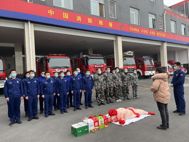 四川新闻网成都1月20日讯 在新春佳节来临之际,1月20日,温江区天府街道天府家园社区党委书记和社区的工作人员代表、社区退伍军人,来到天府街道消防中队,代表社区党委和辖区群众衷心感谢消防中队长期以来为维护社会和谐稳定、保护群众利益、舍小家为大家做出的贡献,为消防官兵送去了慰问品,并向他们表达了节日的问侯与祝福。
