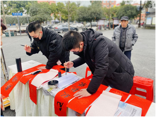 本次活动结合成都文化四季风·民俗闹春为主题,活动邀请了书法、糖画等非遗技术传承人现场制作精美的作品赠送给居民们,广大居民个个喜上眉梢,红色的春联,喜庆的民俗礼物为即将来临的新春佳节增添了浓厚的喜庆氛围,通过送新春祝福,弘扬中华优秀传统文化,营造平安、和谐、祥和的春节氛围。(陈凡坪)