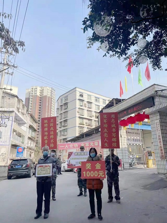 四川新闻网成都2月11日讯 “咚咚锵,咚咚锵”伴随着喜庆热闹的锣鼓声,2月11日,三岔街道党工委委员、组织委员、宣传委员张许组织退役军人服务站、基干民兵及老协腰鼓队对辖区内荣获2021年“四有”优秀军官、三等功现役军人王易璞的家属进行走访慰问,为他们送上喜报、慰问金及新年祝福,对他们为国家培养了一名好军人、为部队送去了一个好人才、为家乡赢得了荣誉表示感谢,希望家长能继续支持孩子的工作,在部队再创佳绩。