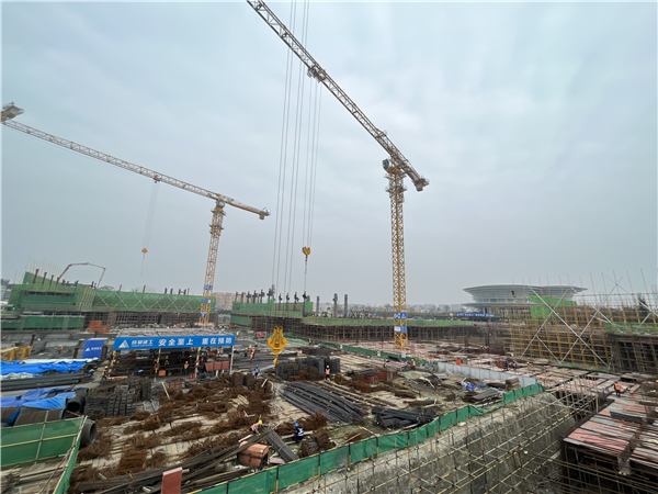 成双大道旁的空港展示展销综合体项目建设现场,塔吊林立、机器轰鸣,工人们在各自的岗位上有条不紊的忙碌着。空港展示展销综合体项目是我区的一个市级重大项目,建成后将打造成为集会议中心、星级酒店、写字楼等业态于一体的标志性项目。因为紧临成都双流国际机场,项目将助力商旅人士实现"飞来开会、开完就走"的高效商务需求。
