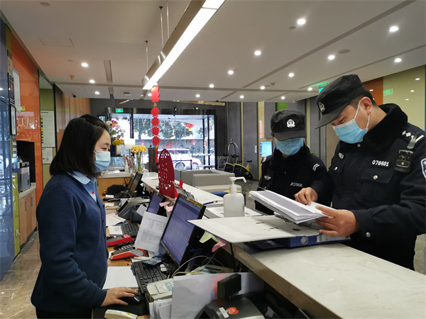 在一家酒店大堂前台,民警们依法依规核查了其外籍人士入住登记本,逐一对外籍人士的护照等信息进行仔细核查。