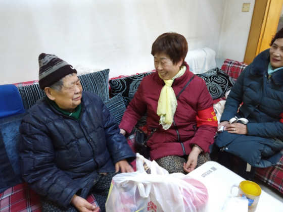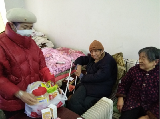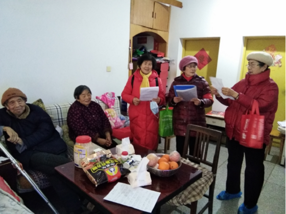 在居民家中,志愿者和老人话起了家常,详细询问了对方的身体情况和生活起居,并致以衷心的祝福。 除了小礼品,志愿者还为老人们带去了合唱队精心准备的歌曲——“欢歌一曲送给你”。