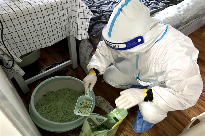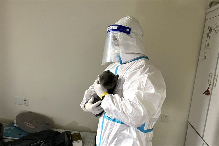 2月22日起,成都高新区桂溪街道世龙公馆被列为中风险地区,实施分区管控。2月26日,世龙公馆的租客佳佳(化名)被集中隔离。临走时,她最放心不下的就是这只猫咪,封控区的工作人员再三表示“会尽全力照顾好这只小猫咪”,佳佳才放心。2月27日,疫情防控工作人员翔子身穿防护服进入屋内,叫了“麻沙吉”,小猫咪就“喵喵喵”地跳过来了,翔子在猫笼里放了猫粮和饮用水,麻沙吉便尽情地享用了。