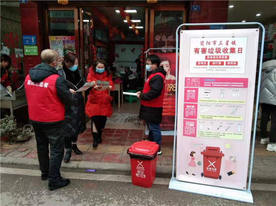 四川新闻网成都3月1日讯 为深入推进垃圾分类宣传工作,提高居民掌握垃圾分类方法,引导居民养成垃圾分类习惯,近日,简阳市三星镇综合执法协调办联合利济社区开展了有害垃圾收集日主题宣传活动,引导居民自觉做好垃圾分类工作,不断强化辖区居民的垃圾分类意识。