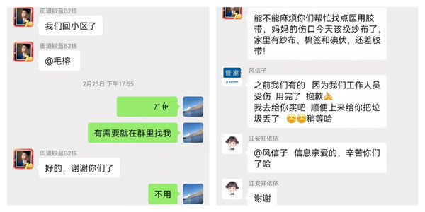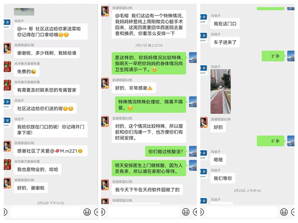 田某和妈妈回家之后,物业公司根据需求为田某代买了医用胶带,社区工作人员每日登门拜访,同时送来了免费爱心蔬菜,带走了生活垃圾,为田某提供了贴心暖心的服务保障。