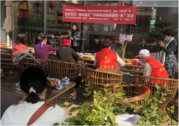 四川新闻网成都3月10日讯 大力弘扬中华民族传统美德,进一步践行社会主义核心价值观,创建美好、幸福、和谐社区环境,在成都市金牛区茶店子街道育苗路社区党委指导下,2022年3月10日上午开展了一场“爱成都·迎大运”——党风廉政“好家风好家训”之“孝”诵读活动。