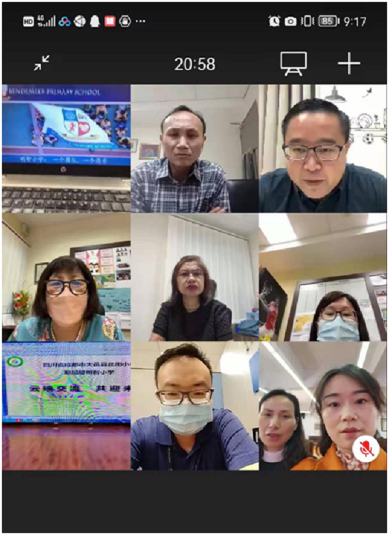 早上九点,大邑县北街小学校长郑俊红、副校长胥金蓉、陈柳伊、新加坡明智小学校长Mrs Tan,副校长Mrs Ravi,副校长Mr Lam,华文部主任杨老师以及两校教师代表齐聚线上。担任此次连线活动的主持人是新加坡新跃社科大学专家赵光普,在他的介绍下,大家相互认识,一见如故。