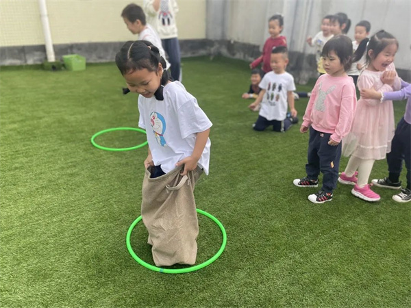 在活动过程中,袋鼠跳、乌龟爬、疯狂原始人……孩子们积极投入,在每个项目中你追我赶,欢呼声、呐喊声、加油声此起彼伏。