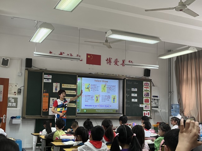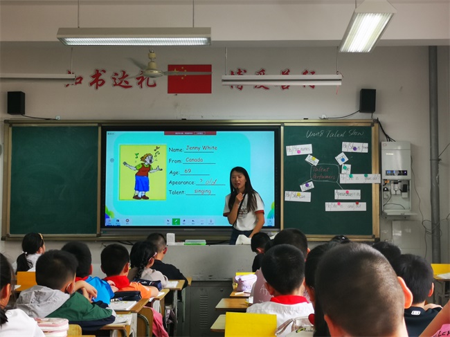 接下来,徐秋老师在4、5班为薛瑶老师完整地呈现了自己的教学思路。本节课的内容是关于“才艺展示”的阅读,四年级的学生是第一次接触语篇的阅读训练。所以本堂课的重点就是培养孩子的阅读能力,为孩子以后的阅读打下坚实的基础。