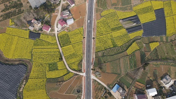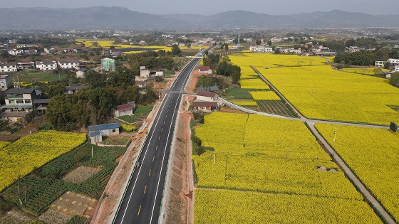 行驶在“赵三隆公路”上,平坦宽敞的道路与两旁的油菜花交相辉映,成为了一道别致风景线。“赵三隆公路”建成后,将连接成德南高速、成南高速、中金快速通道、淮金大道福兴大道、转隆大道,形成便捷畅通路网,进一步完善金堂县路网体系。从赵家镇到转龙镇的通行时间将会缩短至20分钟,三溪镇的脐橙对外运输也将更加便利,彻底扭转当地菜农、果农人挑肩扛、小车转大车的现状。该道路的建成也将极大地加强赵家镇、三溪镇、转龙镇的联系,带动沿线经济发展,方便人民群众出行。(漆奇)