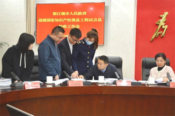 都江堰市自开展国家知识产权强县工程以来,市委、市政府高度重视,通力协作,措施得力,有力推动了都江堰市知识产权事业良好发展势头,知识产权创造、保护、运用、管理、服务体系初步形成,创新成果的知识产权化、商品化和产业化不断推进,运用知识产权助推产业转型升级、经济持续健康发展成效显著,高标准完成了国家知识产权强县工程试点县建设工作的各项任务,经验收组综合考核,一致同意都江堰市高分通过“国家知识产权强县工程试点县”考核验收。