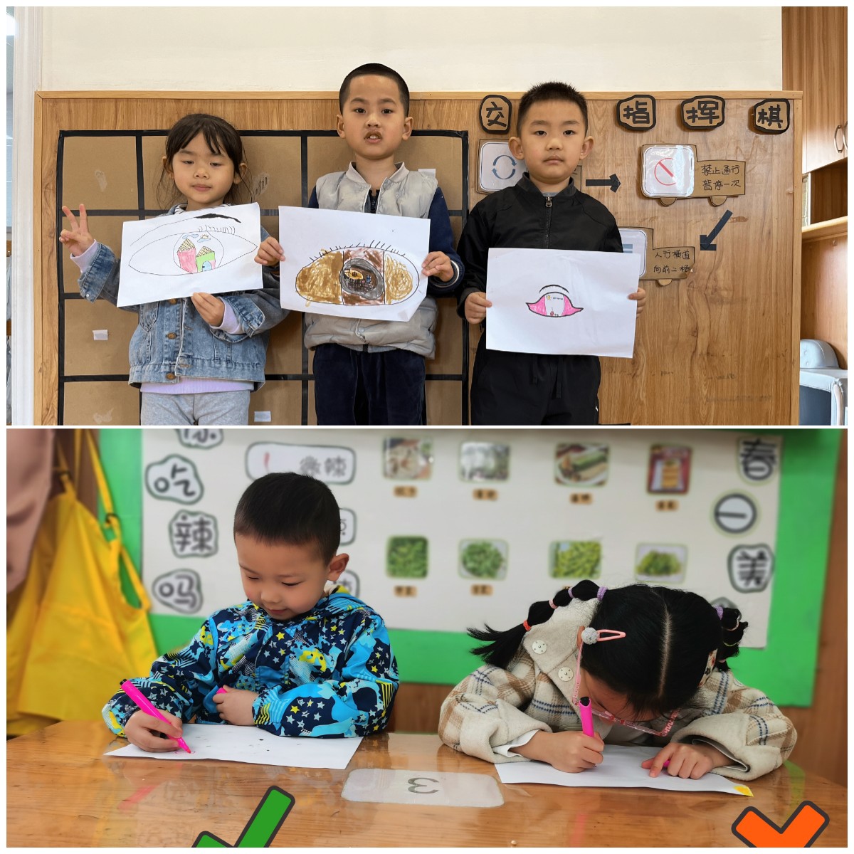 小班的老师们通过生动的图片、有趣的故事、儿歌等方式,了解眼睛的结构和孩子们一同探讨关于眼睛的话题,按照动静结合、远近交替的原则安排每天的游戏活动,让幼儿在运动中愉悦身心,“目”浴在阳光下。