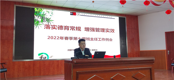 四川新闻网成都3月29日讯 班主任工作是学生管理工作的重中之重,班主任工作是学校管理工作必不可少的环节,是一个学校学生管理工作好坏的重要标志,是提升一个学校学风的基础工程,在学校整个工作中发挥着十分重要的作用。成都市青白江区人和学校于2022年3月28日下午在道和大讲堂召开了本学期第四次班主任经验交流暨班主任工作会议,本次会议由德育处主任张宝主持,校长廖茂,安办主任廖龙和全体班主任老师参加了本次会议。