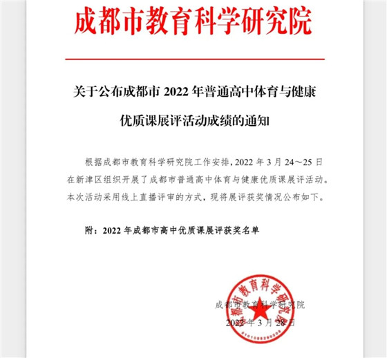 日前,成都市教育科学研究院公布了展评活动的获奖名单,最终秦梓超斩获成都市高中体育与健康优质课展评活动一等奖。
