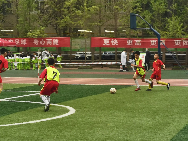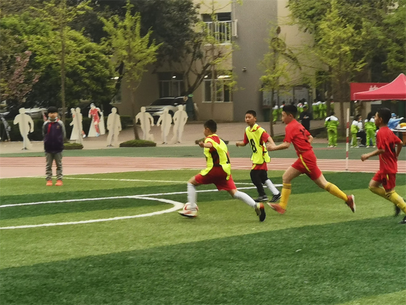 在随后的比赛中,队员们敢打敢拼,一招一式有板有眼,危急关头上演舍身堵“枪眼”的精彩镜头,头球、凌空射门等高难度动作不时出现。同学们把平时训练的技术动作有效地运用到了比赛当中。