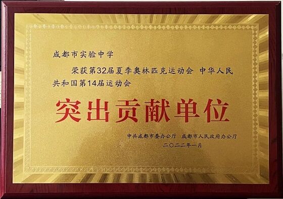 在第32届夏季奥林匹克运动会和中华人民共和国第14届运动会中,成都市运动员取得了优异成绩,展示了蓉城儿女的时代风采和精神面貌,成都市实验中学作为为我市培养输送高质量体育事业人才的单位,为全面推动成都市体育产业高质量发展做出了突出贡献。