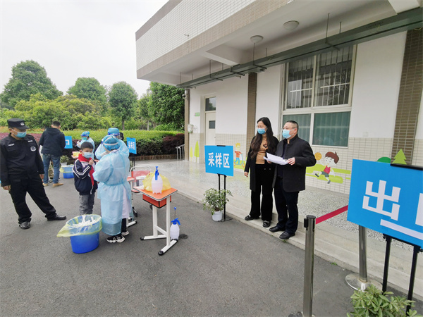 易坤华听取了刘莉关于疫情防控及校园安全管理等工作情况的汇报,并对进一步提升和完善校园疫情防控工作进行了指导。在现场观看了正在进行的师生核酸检测后,易坤华对学校核酸检测的有序组织给予了充分肯定,同时强调指出:思想上要高度重视,充分认识核酸检测的重要意义;行动中要通盘考虑,做细做实面向全体学生和教职员工。