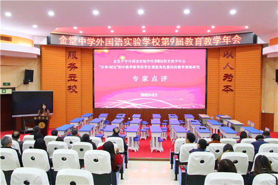 金堂中学外国语实验学校唐中福对专家们的指导和老师们的钻研付出表示感谢。他说:今天的年会是一次课题研讨会,是一次课题成果展示会,是一次培训,是一次学习,更是一个新的起点。课题研究实践初见成果,相信以“初中数学教学的学生课堂角色重构的教学策略研究”为切入点和突破口,金堂中学外国语实验学校各学科的课堂教学科研与改革,将在“五育并举”“双减”等政策不断出台的新形势下,获得更快发展、取得更好成绩!(邓林钢)