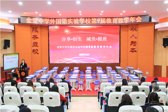 四川新闻网成都4月1日讯 2022年3月31日,金堂中学外国语实验学校以“双减背景下的‘分享•创生’”为主题的第9届教育教学年会如期举行。中国教育学会中学数学专业委员会理事、教育部“国培计划”学科专家、成都市学科带头人、成都市第三批未来教育家培养对象、成都市五一劳动奖获得者、成都市教育科学研究院院长助理黄祥勇和成都市武侯区教育科学发展研究院中学数学教研员张玉华等专家到场指导,县学校安全保障服务中心主任、党委委员张通平等县教育局领导到会指导,赵家中学、官仓白马中学等兄弟学校也派代表参加了年会。