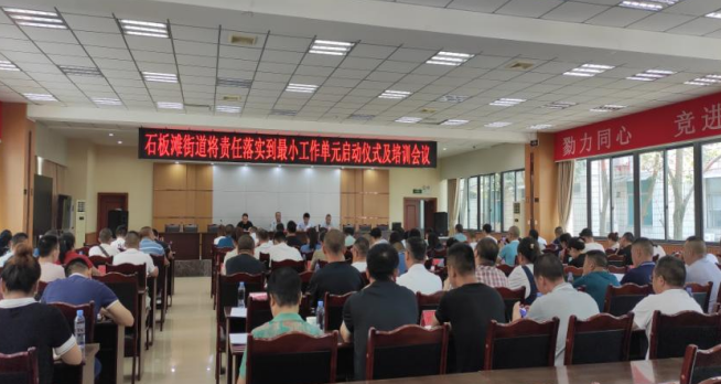 图为石板滩街道开展“将责任落实到最小工作单元”全域启动仪式及工作培训会