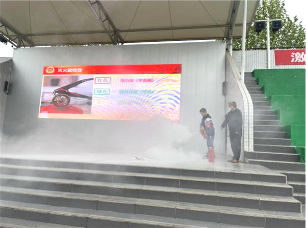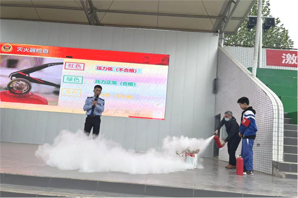 最后,柴铮祥通过实物向同学们讲授了灭火器的正确使用方法和注意事项,学生发展中心主任曾波陶还亲自演示灭火器的正确使用方法,并邀请了学生会的优秀学生代表进行了灭火实践演练。