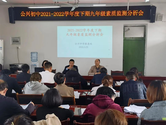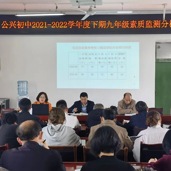 四川新闻网成都4月6日讯 阳春三月,万物复苏,为了进一步提高教学质量,更好地做好2022年中考备考工作,近日,双流区公兴初中在四楼会议室召开了九年级素质检测分析会。参加本次会议的人员有双流区公兴初中校长李韬,教务处主任郭斌,教务处副主任王仕芬以及九年级全体教师,会议由教务处副主任王仕芬老师主持。