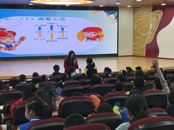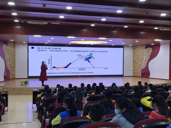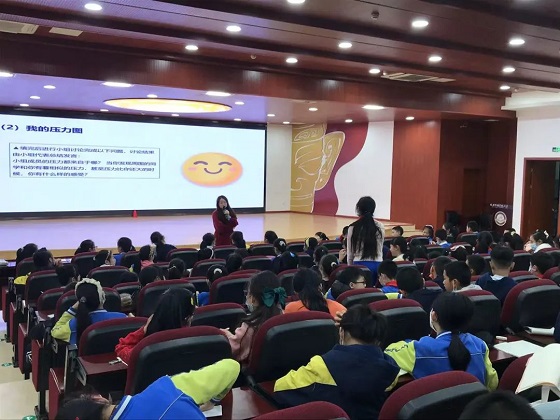 4月1日下午利用班队会课时间,成都市锦官城小学全体五年级学生在成都市锦官城小学学术厅召开《拥抱压力》的主题心理辅导讲座,由学校心理健康教育中心组成员专职心理教师——赵薪冉老师主讲。