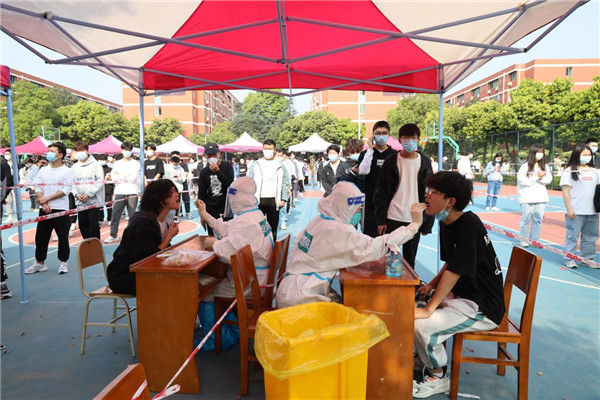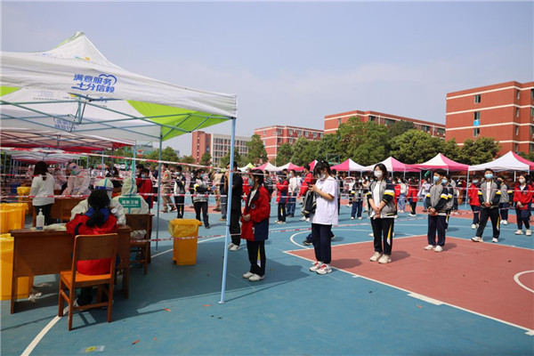 对象精准,全员覆盖。为确保核酸检测工作顺利、安全、有序、高效完成,达到“应检尽检、不漏一人”的要求,通过制定实施细则,精心组织,确保参检师生能够按照规定时间、路线进行检测。师生员工全程佩戴口罩,自觉间隔1米排队等候,经过信息采集后,顺利完成核酸采样。
