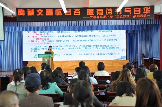 四川新闻网成都4月8日讯 为了彰显大邑县北街小学“情趣教育”的办学特色,深入推进学校“情趣阅读”活动的开展,激发教师对阅读的兴趣,让经典、名著丰富和浸润教师的生活,大邑县北街小学借助每月一期的“知味时光”,于2022年4月8日开展了“胸藏文墨怀若谷,腹有诗书气自华”——“走近苏轼”教师导读活动。