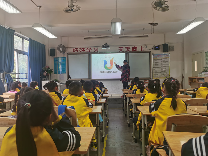 有的班级采取了老师讲解的形式,通过多媒体课件、微视频和老师的精彩讲解,让孩子们了解了很多大运会的相关知识,同时也感受到了祖国的强大、成都的变化,对祖国、对家乡有了更丰富的了解,增强了热爱祖国、热爱家乡的感情。