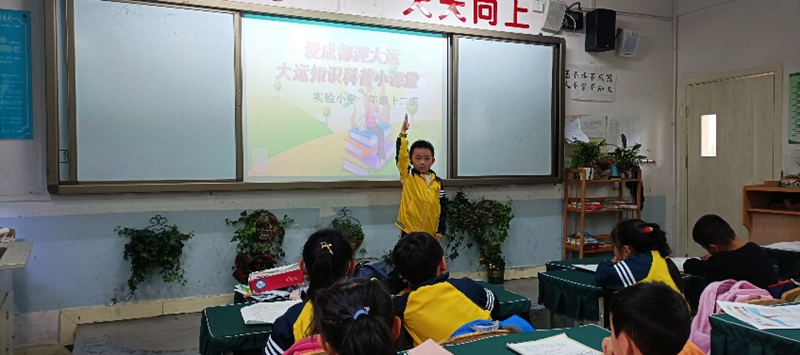 四川新闻网成都4月13日讯 为增强学生热爱祖国、热爱家乡的情感,迎接大运会的到来,培养学生“当好东道主”的小主人翁意识,2022年3月底至4月初,成都市青白江区实验小学开展“爱成都·迎大运”大运知识科普小课堂活动。