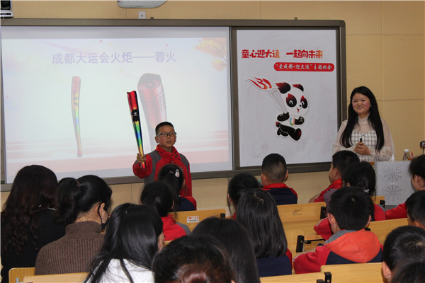 活动由来自南开为明学校的莫芮老师执教的微班会课《成都娃·迎大运》开始。莫老师借助吉祥物蓉宝引出大运会,并请小主播们播报赛事相关介绍,最后学生通过小组制作祝福卡,增进了对家乡成都的热爱。接下来,来自实验小学的高浥烜老师执教主题班会课《童心迎大运·一起向未来》。高老师寓教于乐,通过放飞气球的小游戏引导学生了解大运会相关知识,孩子们在轻松的氛围中学习,在有趣的学习中成长,更加领悟到“爱成都·迎大运”的内涵。