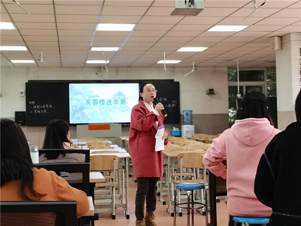 王主任结合今天的《芙蓉楼送辛渐》同课同构就“人人过关”的高效课堂给予指导: 一是目标明确,每堂课要有明确的目标并贯穿于始终; 二是过程扎实,教学方法要有实效,练习过程要落实; 三是检查到位,凡有任务必有检查,凡有检查,必有标准; 四是结果斗硬,对于不过关的孩子,课后一定要督促过关。