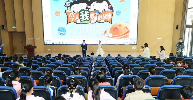 四川新闻网成都4月22日讯 为了多创设让学生想说、敢说、喜欢说、有机会说的语言大环境,提高学生对语言的感受能力、表达能力,同时给喜欢讲故事的孩子提供一个展现自我的大舞台,让金山娃走进绿色阅读,亲近阅读,4月21日,金堂县融媒体中心《棒棒糖》栏目组岚子姐姐、云帆哥哥走进金山小学,开展了“今天我要讲故事”阅读分享。三年级师生300余人参加了活动。