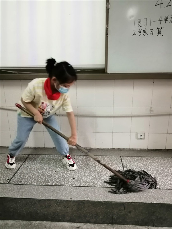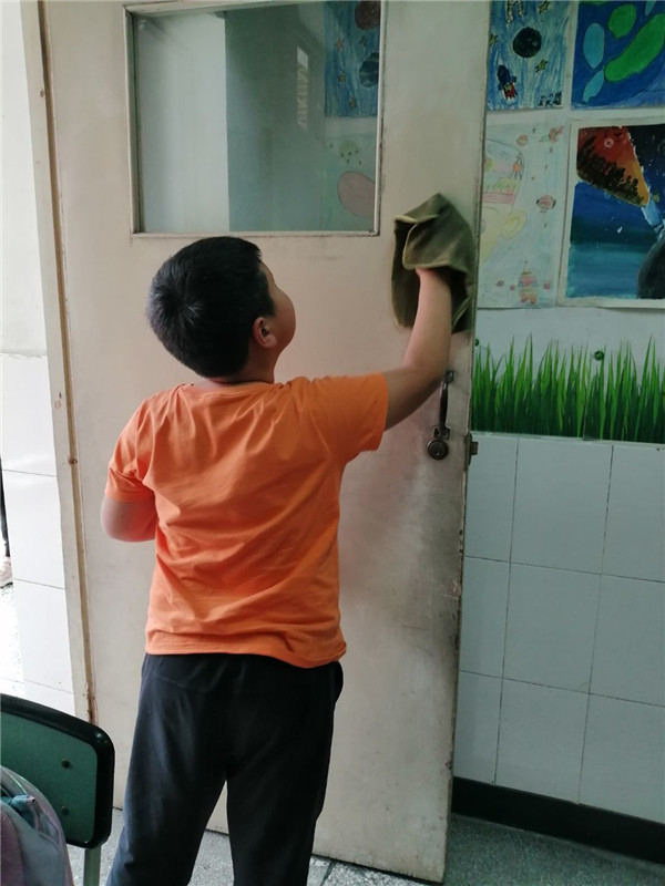 4月24日,该校全体师生还进行了一次全校大扫除,一起对教室、楼道楼梯以及公区进行了彻底清扫。办公室里,老师们也积极行动起来,用拖把、抹布清污去垢,规整办公用品。