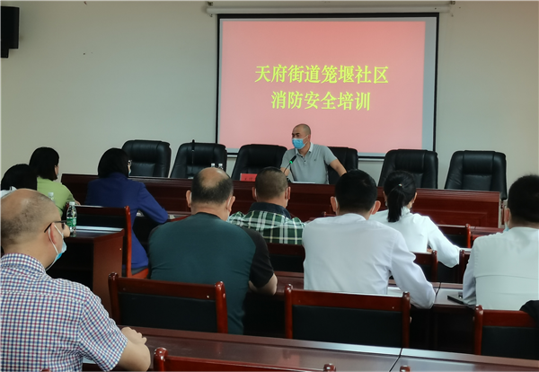 四川新闻网成都4月26日讯 为进一步加强安全知识教育,提高小区物业、企业、大型商超等重点场所从业人员消防安全意识和火灾应急处置能力,构筑社区消防安全防火墙,4月26日上午,天府街道笼堰社区、天府街道社区教育分校特邀四川省消防协会科普委,在二楼会议室开展“掌握用火用电用气安全,提升自我安全防范意识”消防安全培训活动,辖区企业、物业、大型商场等重点经营单位30余家企业商户负责人参加了此次培训。
